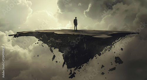 Fototapeta premium Samotność na lewitującej wyspie – surrealistyczna wizja egzystencji.