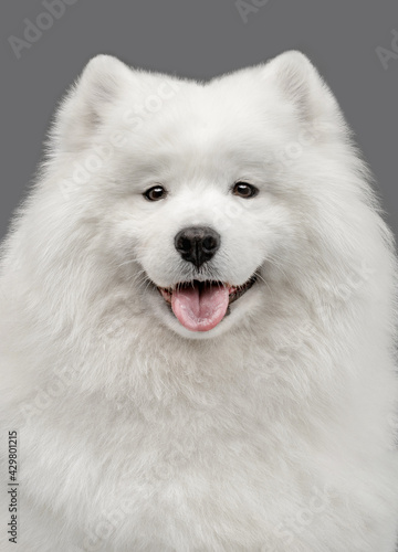 © food and animals, Obraz premium samoyed on gray background