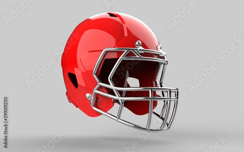 Fototapeta premium Sample American football Red helmet. Perspective view. Sport equipment. 3D...