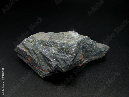 © Nadezhda, Fototapeta premium Sample of raw gray magnetite on a black background
