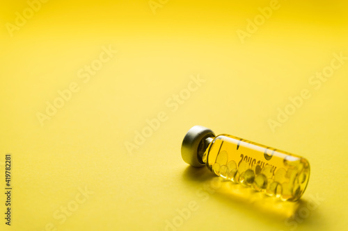Fototapeta premium Sample Vaccine bottle with yellow background, Medical and health concept for...