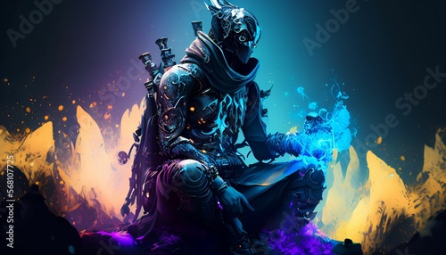 © Julius, Fototapeta premium Samurai Cyborg sitting while holding magical power