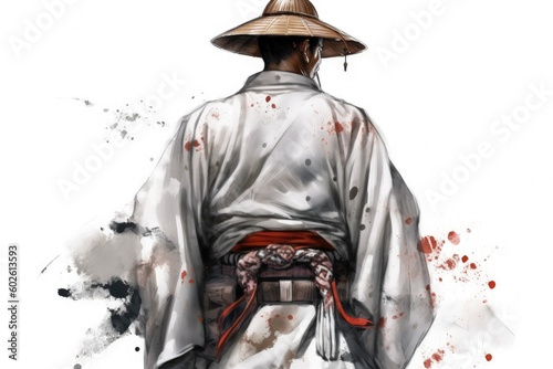 Fototapeta premium Samurai warrior from the back, martial art concept, digital illustration. Generative AI
