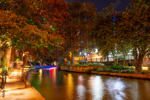 © Wangkun Jia, Fototapeta premium San Antonio River Walk w pobliżu S Presa St w centrum San Antonio w Teksasie, USA.
