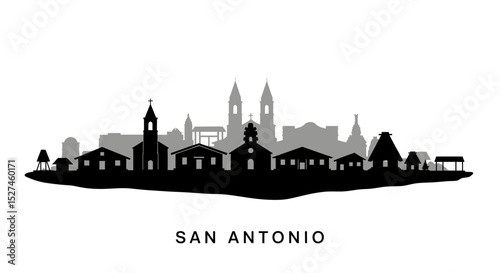 © godsfavoritearts, Naklejka premium San Antonio Skyline City Silhouette Vector.