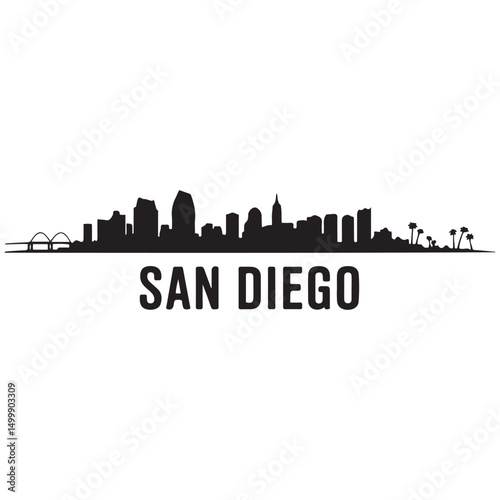 Naklejka premium San Diego city skyline horizontal banner. Black San Diego city, USA. Vector template for your design. Vector black silhouette. with white background