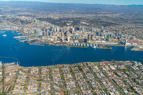 Naklejka premium San Diego Skyline: Aerial Majesty of Urban Waterfront and Architectural...