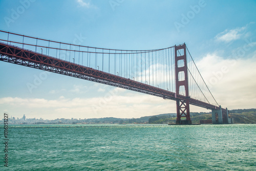 Naklejka premium San Francisco, Golden Gate Bridge from a cruise ship