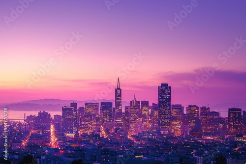 Fototapeta premium San Francisco's Skyline Glows with Twilight Hues, a Captivating Blend of...