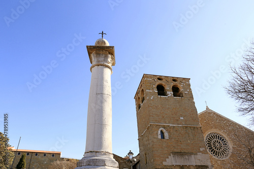 Fototapeta premium San giusto cathedral with halberd symbol of Trieste in the foreg