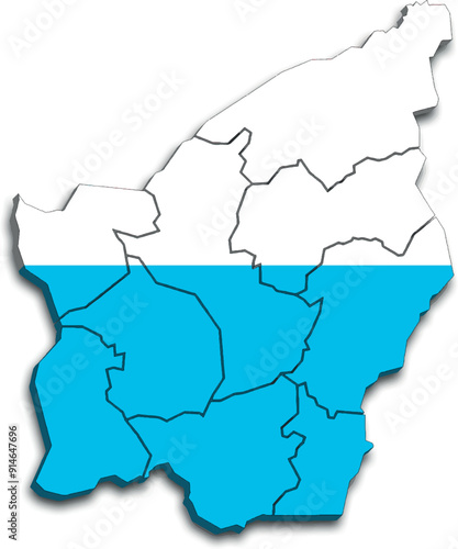 © WALDIR, Obraz premium SAN MARINO MAP WITH ITS DISTRICTS AND POLITICAL ADMINISTRATIVE DIVISIONS with flag