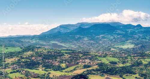 © Sergii Mironenko, Fototapeta premium San Marino view from the city to the hills by day