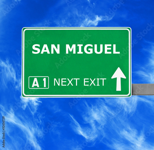Obraz premium SAN MIGUEL road sign against clear blue sky