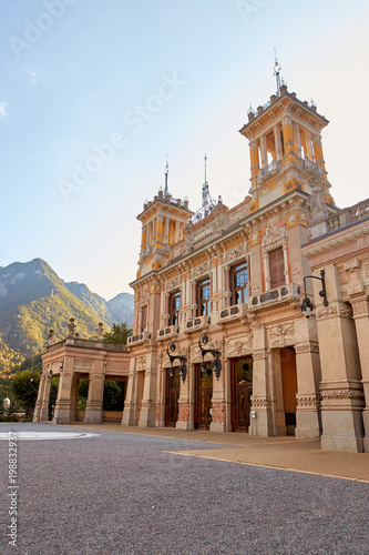 Naklejka premium San Pellegrino Terme, Italy - August 18, 2017: Municipal casino and adjacent...