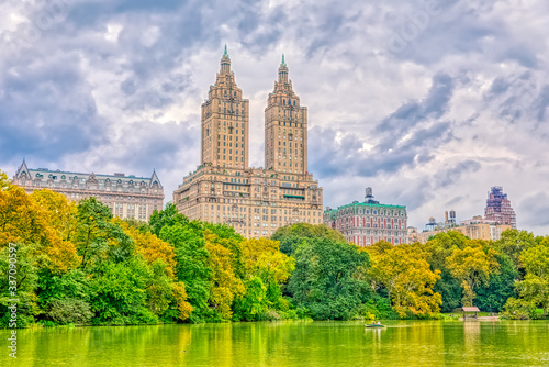 Naklejka premium San Remo building view during the gloomy weather from the Central Park.