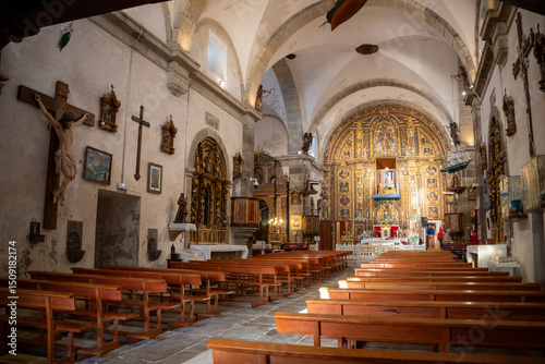 © MARIA ALBI, Fototapeta premium Sanctuary of A Virxe da Barca in Muxía, Galicia, Spain, perched on dramatic Atlantic cliffs. A key stop on the Camino de Santiago. Sunset.