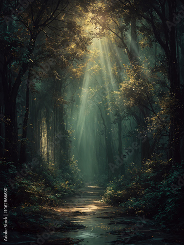 © Oana, Fototapeta premium Sanctuary of the Luminous Path. Generative AI