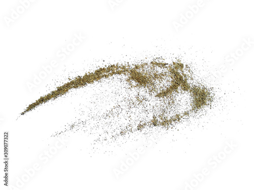 Fototapeta premium Sand beach texture on white background. Sand arrangement with clipping path.