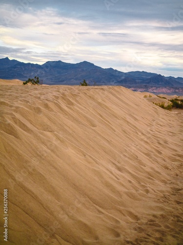 Fototapeta premium Sand dunes in Death Valley, bushes and branches everywhere