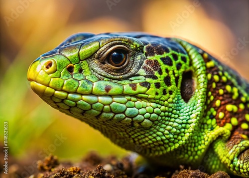 © prapatsorn, Fototapeta premium Sand Lizard Breeding Season Close-up, Lacerta agilis, Reptile, Reptilian Skin Texture, Vivid Colors, Wildlife Photography, Nature, Poland, Zoology, Herpetology