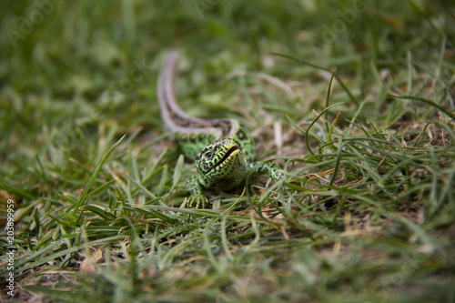Fototapeta premium Sand Lizard in the grass. Spring, Czech Republic.