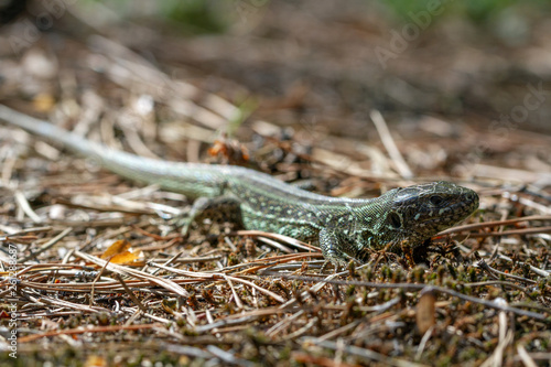 Fototapeta premium Sand lizard (Lacerta agilis) close-up