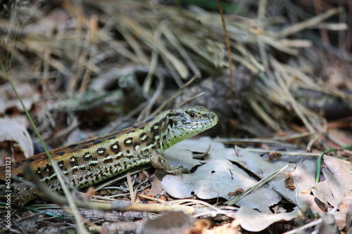 Naklejka premium Sand lizard (Lacerta agilis) in the forest