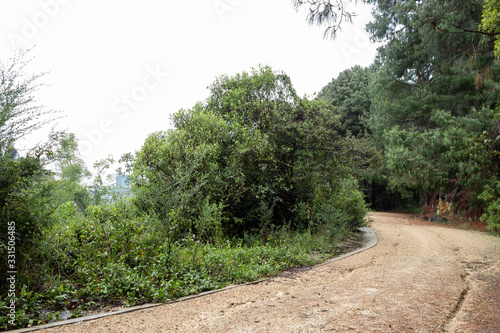 Fototapeta premium Sand road into andeas mountain with rainforest. ideal for adventure, trekking and hiking