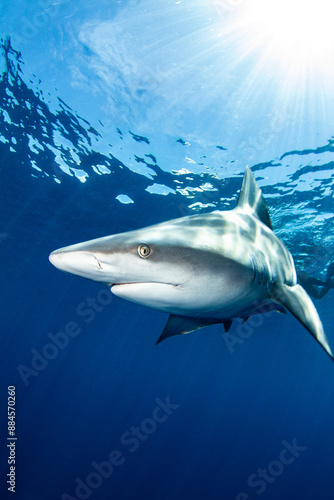 © Elise, Fototapeta premium Sandbar shark in the deep blue ocean
