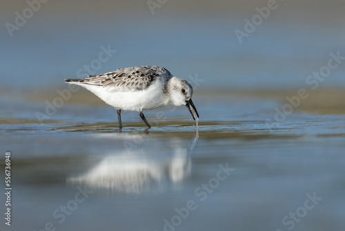 Obraz premium Sanderling looking for food at the baltic sea coast