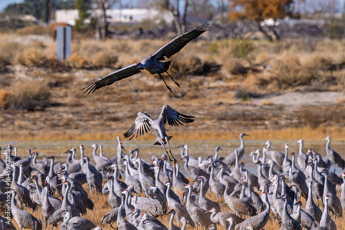 © robin, Obraz premium Sandhill cranes (antigone canadensis) taking flight at their winter home near Wilcox AZ