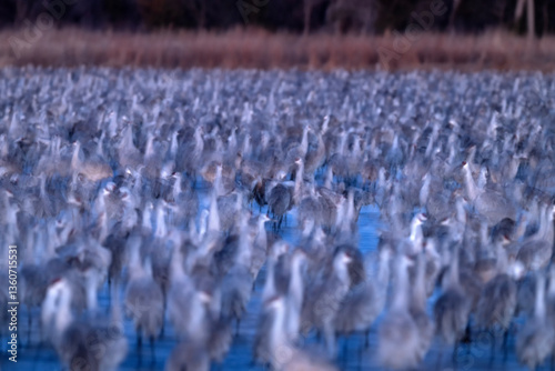 © Tom, Naklejka premium Sandhill cranes (Grus canadensis) at dawn; Crane Trust; Nebraska