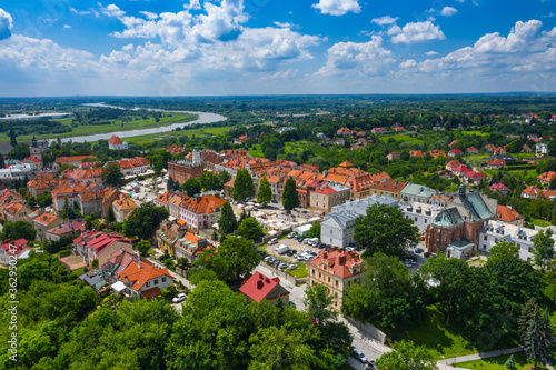 Obraz premium Sandomierz, Polska. Widok z lotu ptaka na średniowieczne stare miasto z wieżą...
