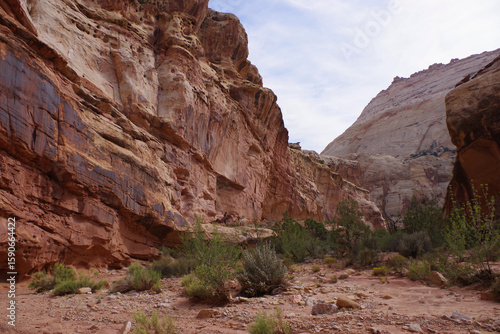 Fototapeta premium Sandstone canyon with desert wash and shrubs