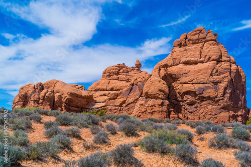 Fototapeta premium Sandstone rock formations in Arches National Park, Utah