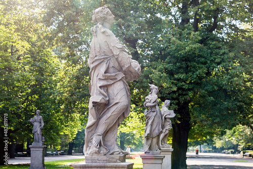 Naklejka premium Sandstone statues in the Saxon Garden, Warsaw, Poland. Made before 1745 by...