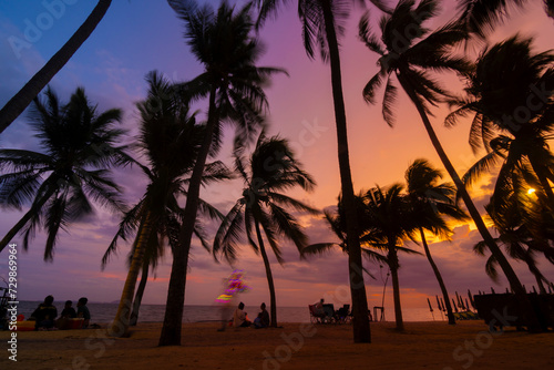 © noppadon, Fototapeta premium Sandy Beach Sunset with Palm Trees and Tropical Sky