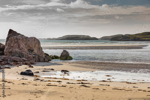 Fototapeta premium sandy beach with dune grass in Scotland, Isle of Lewis at low tide
