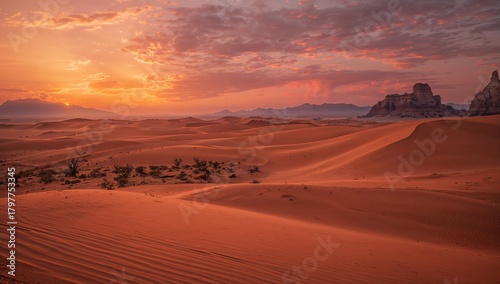 © CreativeBro, Naklejka premium Sandy desert landscape in Egypt during sunset, highlighting seasonal change