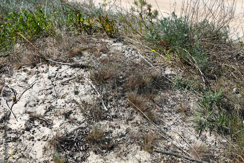 Obraz premium Sandy dunes with various plants growing on them in Mielno, Poland