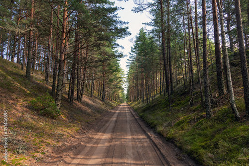 Fototapeta premium Sandy road in nice pine forest.