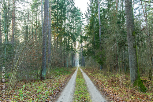 © Art L, Fototapeta premium Sandy road in the forest in late autumn, Bialowieza Forest, Poland