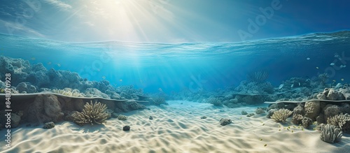 Naklejka premium Sandy sea bottom Underwater background. Creative banner. Copyspace image