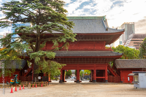 © Mistervlad, Fototapeta premium Sangedatsumon (main gate) of Zojo-ji temple in Minato district, Tokyo, Japan