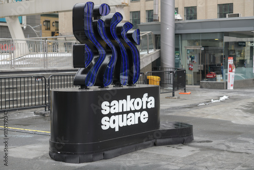© eugen, Fototapeta premium Sankofa Square sign at 1 Dundas St E, Toronto