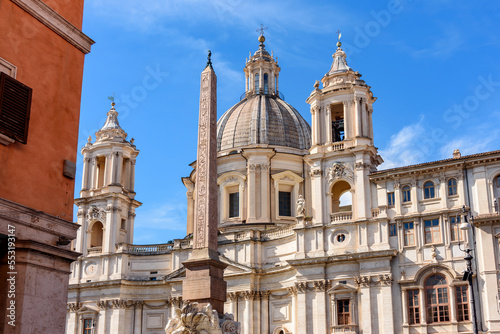Obraz premium Sant'Agnese in Agone church and Fountain of Four Rivers (Fontana dei Quattro Fiumi) on Piazza Navona square, Rome, Italy