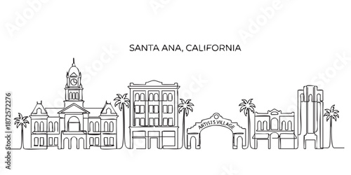 Fototapeta premium Santa Ana, California City Skyline Continuous Line Art with Historic Courthouse