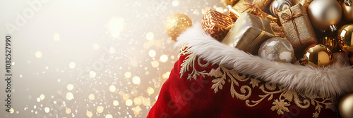 Fototapeta premium Santa Bag with Gold Wrapped Gifts and Ornaments