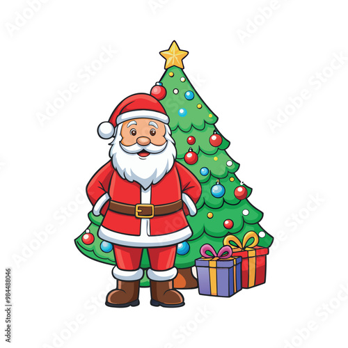 Fototapeta premium Santa claus and christmas tree Vector art illustration isolated on a white background