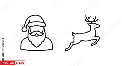 © chriesenda, Naklejka premium Santa Claus and Reindeer Line Art Illustration.
